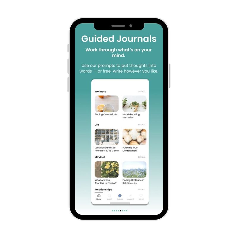 Uplift Guided Journals don't leave you staring at a blank page and wondering where to start (although you can do that in Free Write if you like!). Choose a journaling topic and walk through five thoughtful questions that will help you gain deeper insights into your thoughts, emotions, and growth.